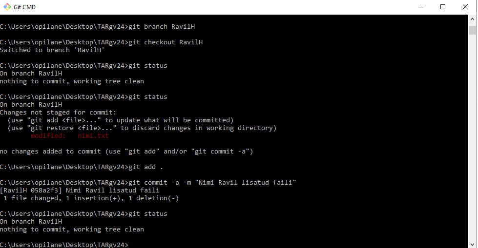 Haru kustutamine / удаление ветки git branch -d RavilH
